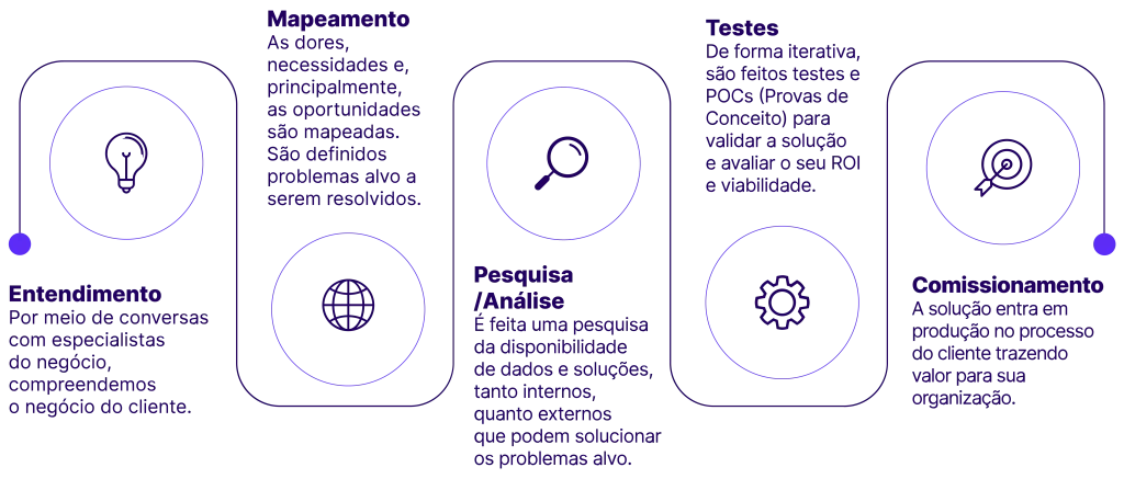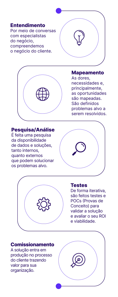 Combinamos nossos dados proprietários aos dados do cliente e de fontes externas para desenvolver modelos de machine learning e análises preditivas que geram valor real para o negócio.